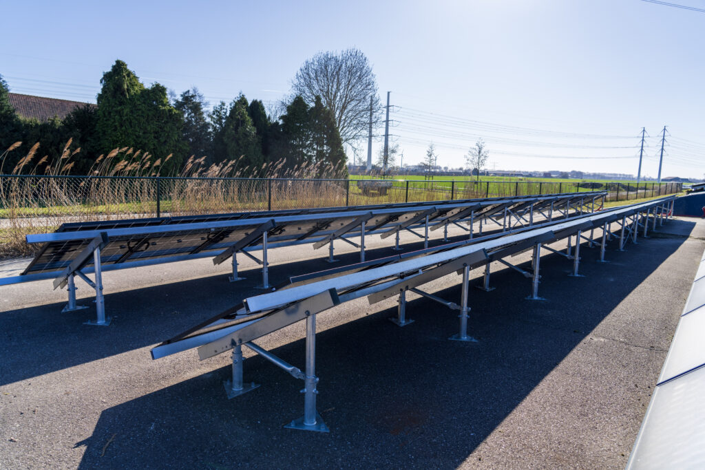 Voorafgaand aan de installatie zijn de schroeffundamenten op locatie getest met de TP60 Pulltest-kit, om de juiste typen en lengtes te bepalen. De installatie verliep in fases: eerst werd de oost-west opstelling gerealiseerd, daarna de dijkopstelling tegen het bassin en tot slot de opstelling op het asfalt. Voor het personeel uit de kas is er een training gegeven over het installeren van schroeffundamenten bij solar projecten.